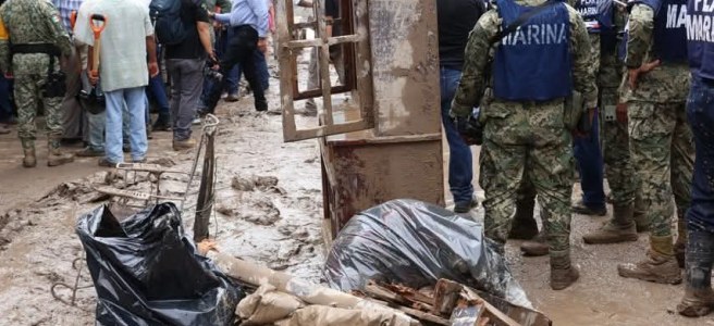 Ricardo Gallardo visitó el barrio El Carmen y la colonia La Estrella, acompañado por autoridades municipales, estatales y personal de la Secretaría de la Marina y el Ejército Mexicano quienes implementan el Plan DN-III-E en coordinación con Protección Civil Estatal, en estas zonas, donde el nivel del lodo superó los 30 centímetros por lo que se realizan labores de retiro de escombros, saneamiento y desinfección