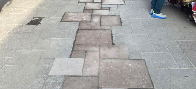 La intervención consistió en la sustitución de 45 metros lineales de tubería de la red de drenaje, realizados en dos etapas para mantener en operación la zona comercial y artesanal, así como el tránsito peatonal característico de este corredor.