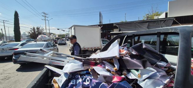 RETIRAN TONELADA Y MEDIA DE PUBLICIDAD NO AUTORIZADA POR EL AYUNTAMIENTO DE LA CAPITAL
