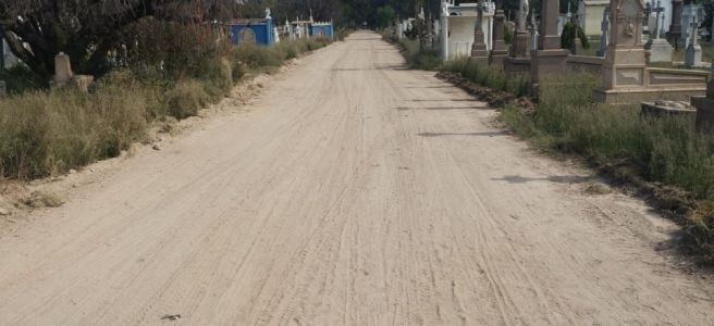 El Gobierno de la Capital, a través de la Dirección de Obras Públicas, realiza trabajos de renivelación en las vialidades internas del Panteón Municipal del Saucito, como parte del mantenimiento preventivo y correctivo previo a la celebración de Día de Muertos, fecha en la que se registra el mayor número de visitantes en este recinto histórico de la ciudad.