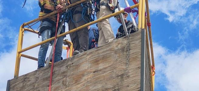 Durante la jornada se realizaron ejercicios intensivos en el uso de cuerdas, anclajes, sistemas de descenso y ascenso, así como en técnicas seguras para el traslado de víctimas en altura.