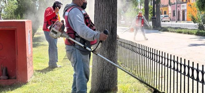 Estas labores incluyeron poda, retiro de basura y maleza, así como limpieza general de los espacios públicos aledaños, con lo que se busca mejorar la imagen urbana y ofrecer a las y los ciudadanos un entorno más limpio, ordenado y seguro.
