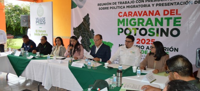 La presentación de la estrategia reunió a presidentes y representantes de 30 municipios, incluyendo Villa de Pozos, importante receptor de remesas, fortaleciendo la atención y acompañamiento a los migrantes potosinos.