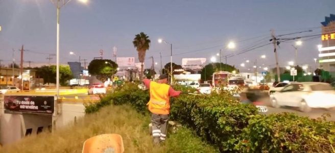 En una estrategia para evitar afectaciones al tránsito diario, personal de Servicios Municipales del Ayuntamiento de San Luis Capital realizó trabajos de mantenimiento durante la noche. Uno de ellos en la glorieta González Bocanegra con tareas de deshierbe, recolección de basura, ornamentación y cuidado general de las áreas verdes.