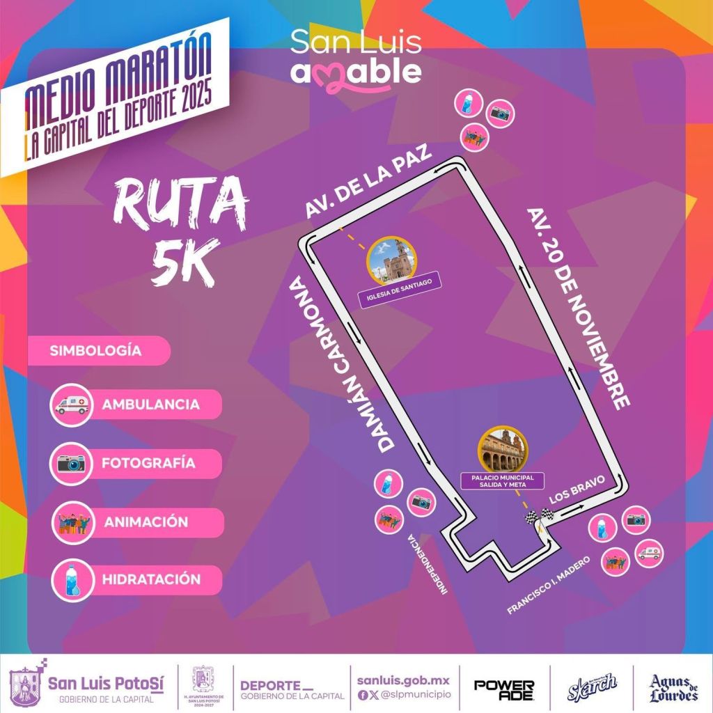 La salida de las competencias iniciará frente a Palacio Municipal en el lado oriente de la Plaza de Armas, donde continuarán hacia la calle Los Bravo, para incorporarse a la avenida 20 de noviembre y continuar por avenida de la Paz, seguirán con dirección a Damián Carmona hacia Álvaro Obregón, Independencia y avenida Venustiano Carranza. En este punto los competidores de 5 kilómetros se dirigirán hacia la calle Francisco I. Madero para dirigirse a la meta en Plaza de Armas.