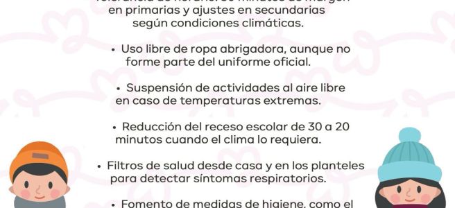 PARA EVITAR RIESGOS POR BAJAS TEMPERATURAS LA DIRECCIÓN DE EDUCACION MUNICIPAL MEDIDAS PREVENTIVAS