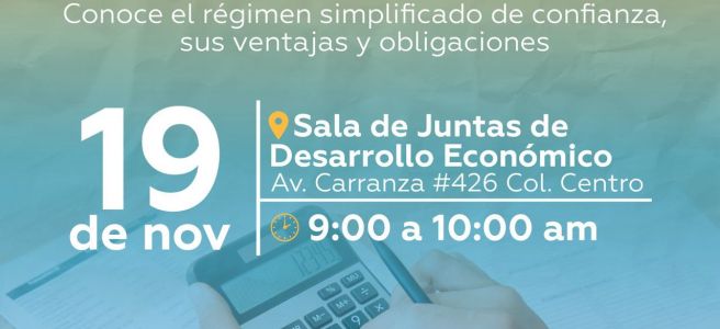 El Gobierno Municipal de San Luis Potosí, a través de la Dirección de Desarrollo Económico, invita a emprendedores, profesionistas y ciudadanos interesados a participar en la capacitación “¿Quieres darte de alta en Hacienda y tributar como persona física? Conoce el Régimen Simplificado de Confianza, sus ventajas y obligaciones”, con el objetivo de brindar herramientas claras para el cumplimiento fiscal.