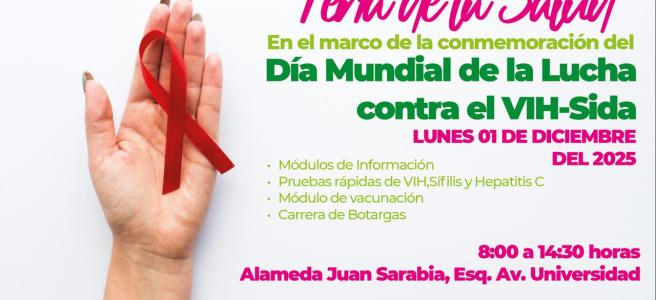 Este 1 de diciembre las siete Jurisdicciones Sanitarias realizarán actividades alusivas a la fecha; en la capital se llevará a cabo una Feria de la Salud en la Alameda Juan Sarabia, donde se ofrecerán módulos de información, vacunación y pruebas rápidas para la detección de VIH, sífilis y hepatitis C.