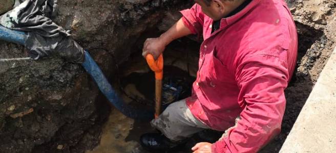 Cuadrillas de la Dirección de Operación y Mantenimiento de INTERAPAS, repararon una fuga interna en la red de agua potable sobre la calle Espinoza y Cuevas de colonia Julián Carrillo, como parte de las acciones permanentes para mejorar la infraestructura hidráulica en toda la Zona Metropolitana.