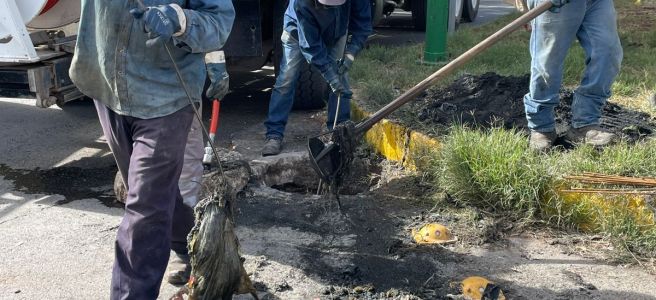 De manera inmediata, las cuadrillas comenzaron con el desazolve y limpieza para bajar los niveles de la línea sanitaria y permitir que el agua residual retome su flujo normal.