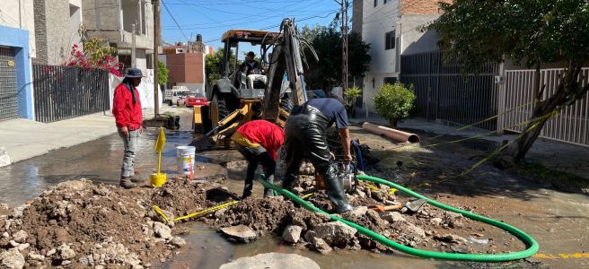 Durante este miércoles, Interapas llevó a cabo labores en el circuito Maestros Ilustres, en la colonia Universitaria, donde se atendió y reparó una fuga en la red sanitaria.