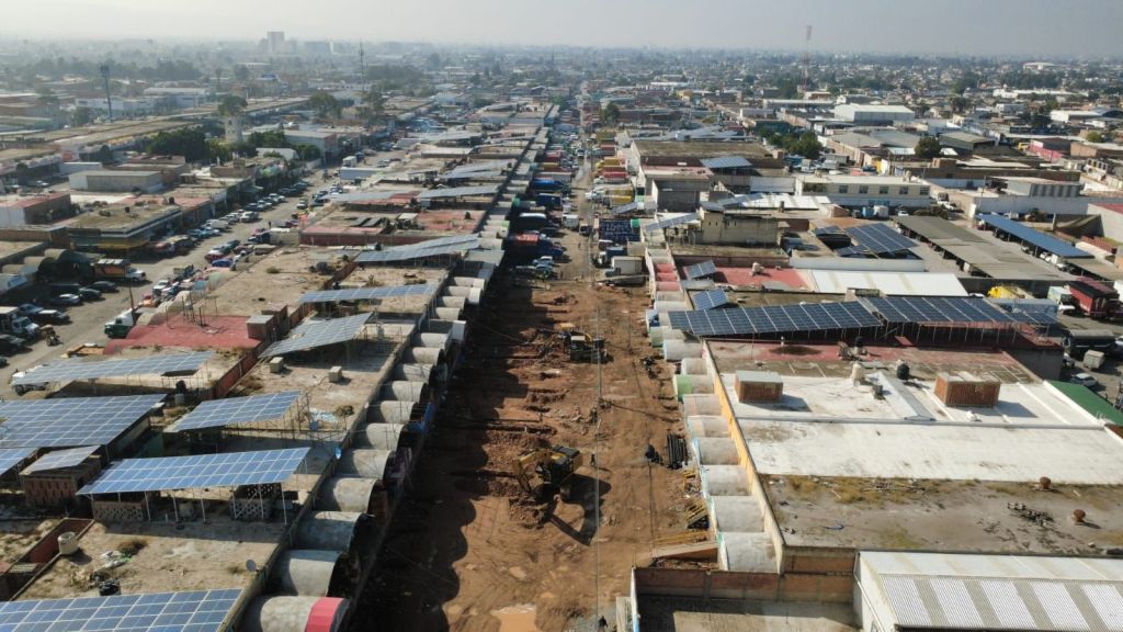 La modernización de la zona de abastos avanza de manera sostenida con los trabajos que se desarrollan en Calle Sexta, tanto en su tramo oriente como poniente, donde la Secretaría de Desarrollo Urbano, Vivienda y Obras Públicas (Seduvop) registra ya un avance del 50 por ciento.