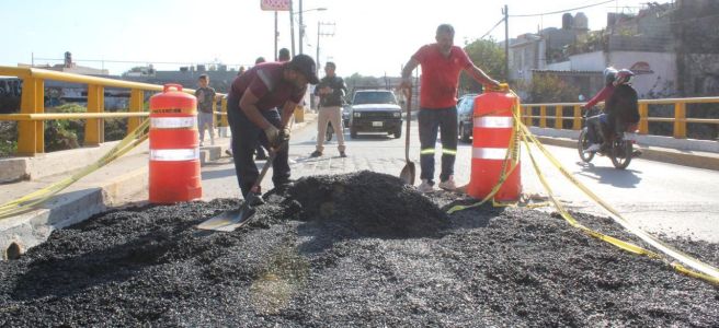 La Dirección de Obras Públicas precisó que el puente no presenta ningún daño estructural, por lo que los trabajos se concentran exclusivamente en la reconstrucción de la superficie de rodamiento y las rampas de acceso y salida. Como parte del proceso, este martes 6 de enero, a partir de las 9:00 de la mañana, se iniciará la reconstrucción del pavimento con concreto hidráulico, labores que tendrán una duración aproximada de 10 días; de manera provisional se realizó un bacheo para que este lunes continúe la circulación de forma normal.