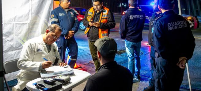Por quinto año consecutivo, esta estrategia de prevención se realizó con la instalación de módulos itinerantes en las principales vialidades de la ciudad, con la participación coordinada de elementos de la Policía Vial, personal médico, la Dirección de Justicia Cívica, Asuntos Internos y la Coordinación Municipal de Derechos Humanos, quienes actuaron en todo momento con transparencia y respeto a la dignidad de las personas.