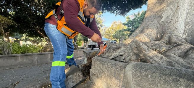 La Cuadrilla de Respuesta Inmediata de la Unidad de Gestión del Centro Histórico, reparó jardinera, y atendió fuga en coordinación con Interapas.