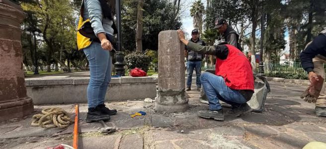 La Unidad de Gestión del Centro Histórico informó que la Cuadrilla de Respuesta Inmediata, en colaboración con el área de Conservación, intervino para la reparación de un pedestal de cantera ubicado en el centro de la Alameda, el cual se encontraba dañado.