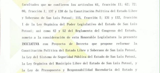 El Gobernador de San Luis Potosí Ricardo Gallardo Cardona, presentó al Congreso del Estado la iniciativa de reforma para establecer un salario mínimo de 14 mil pesos para las y los policías municipales, para dignificar su labor, fortalecer la seguridad pública y garantizar una remuneración justa para quienes protegen a la ciudadanía.