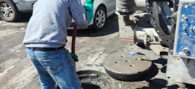 Durante la atención, las cuadrillas realizaron trabajos de limpieza en la red de drenaje para retirar residuos acumulados que impedían el flujo normal de las aguas residuales, logrando restablecer las condiciones de operación en la zona.