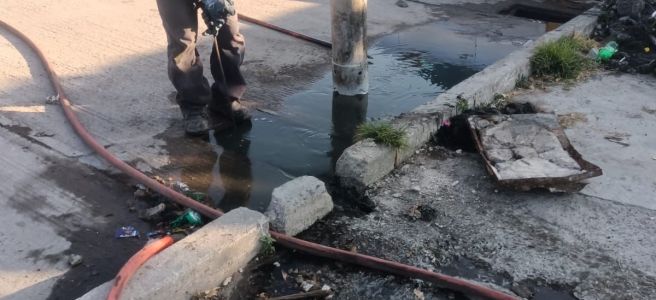 Con apoyo de camión hidroneumático se efectuaron sondeos y limpieza en la red pública municipal para liberar posibles obstrucciones y bajar los niveles en la línea sanitaria. Sin embargo, durante la inspección se detectó que el problema no se originaba en la tubería de drenaje, sino en la descarga sanitaria del propio mercado, la cual se encuentra saturada y corresponde a infraestructura bajo jurisdicción estatal.