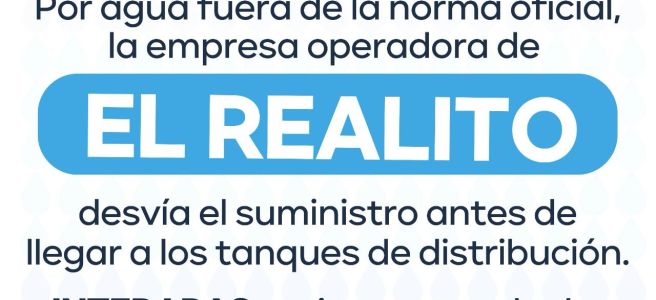 El Organismo Operador de Agua Potable, Alcantarillado y Saneamiento INTERAPAS informa que la empresa operadora del acueducto “El Realito” notificó la suspensión temporal del envío de agua hacia la zona metropolitana, debido niveles de turbidez detectados en la fuente de abastecimiento.