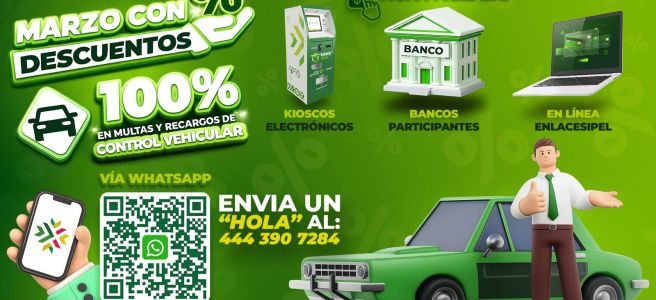 La Secretaría de Finanzas (Sefin) informó que durante todo marzo continuará vigente el descuento del 100 por ciento en multas y recargos de control vehicular.