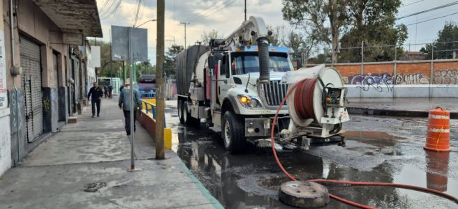 Tras las maniobras de desazolve, la descarga quedó liberada y funcionando con normalidad, por lo que el nivel del agua acumulada continuará bajando.