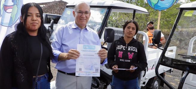 El Alcalde Enrique Galindo encabezó una nueva entrega de motocarros adaptados para la recolección de residuos, con los que se sustituyen los antiguos carretones de tracción animal que todavía operaban en algunas partes de la zona urbana, con lo que además de promover el bienestar animal, se hace más rápido y eficiente el servicio que prestan los recolectores voluntarios.