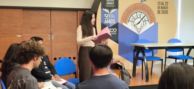 En el marco de la 50 Feria Nacional del Libro de la Universidad Autónoma de San Luis Potosí, estudiantes del curso de poesía impartido por la escritora y editora mexicana Gabriela D’Arbel realizaron la segunda edición del Maratón de poesía, actividad que representa un espacio relevante para que los jóvenes no solo se expresen a través de las palabras, sino también hablen frente al público.