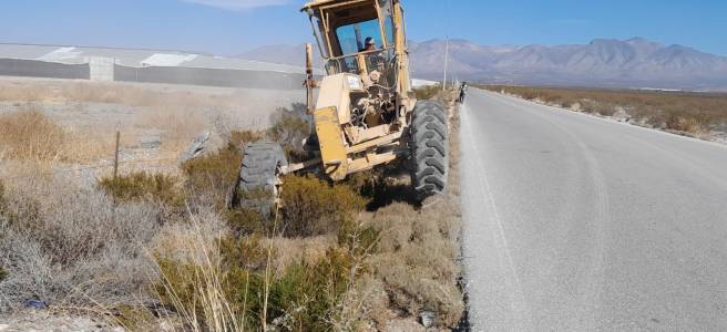 La Junta Estatal de Caminos (JEC) realiza trabajos de conservación en tres caminos de Catorce, beneficiando a 40 localidades, donde habitan más de 9 mil personas, con chapoleo, limpieza de maleza y reparación de baches.