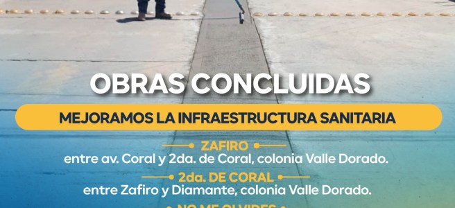 Entre los puntos donde ya se renovó la red sanitaria se encuentran: calle Zafiro y Segunda de Coral de la colonia Valle Dorado; No Me Olvides, Azahares y Capuchina en Jardines del Sur; un primer tramo de la Primera Privada de Constitución, así como Guadalupana en Julián Carrillo; y Amatista en la colonia Industrias.