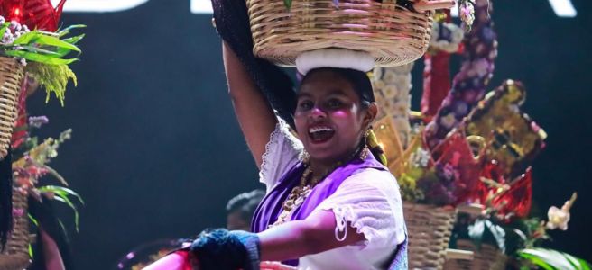 Cerca de 300 artistas en escena ofrecieron un espectáculo lleno de color, música, danza y simbolismo, representando la riqueza cultural de las ocho regiones del estado de Oaxaca.