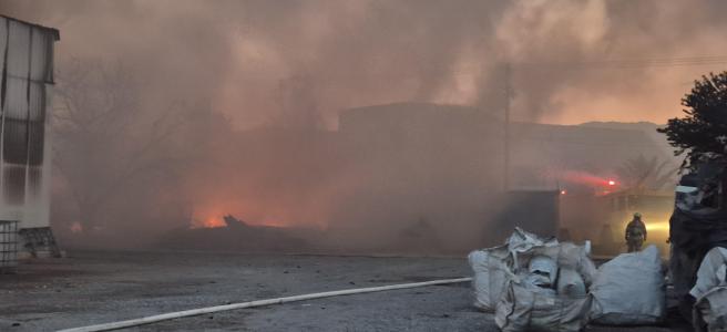 TRABAJAN PARA CONTENER INCENDIO EN NAVE INDUSTRIAL