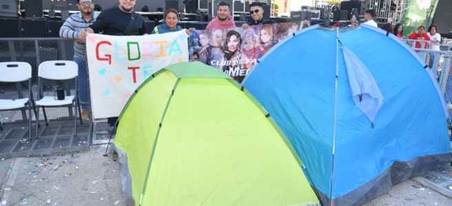 Desde las 1 de la madrugada de este día, la Plaza Principal de Soledad de Graciano Sánchez comenzó a recibir a los primeros fanáticos de Gloria Trevi, quienes esperan con entusiasmo el gran concierto de esta noche, en el marco del séptimo día de la Feria Nacional de la Enchilada que se consolida como un evento de alcance nacional.