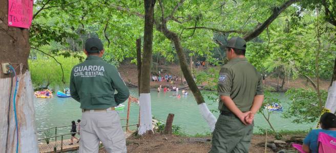 En puntos turísticos de alta afluencia como Cascadas de Micos y el paraje El Conejo, en Ciudad Valles, así como en Tambaque, Tanchachín, La Garita y La Morena, se desplegaron operativos a través de la Guardia Civil Estatal (GCE) dentro del dispositivo Semana Santa Segura 2026.