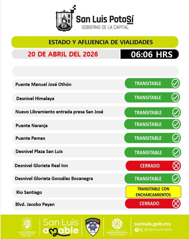 REPORTE VIAL abril 20, 2026 ~ adminmediastintas Estado de vialidades a las Comparte esto: Compartir en X (Se abre en una ventana nueva) X Comparte en Facebook (Se abre en una ventana nueva) Facebook Más Compartir en LinkedIn (Se abre en una ventana nueva) LinkedIn Compartir en Reddit (Se abre en una ventana nueva) Reddit Compartir en WhatsApp (Se abre en una ventana nueva) WhatsApp Enviar un enlace a un amigo por correo electrónico (Se abre en una ventana nueva) Correo electrónico Me gusta Cargando... Relacionado