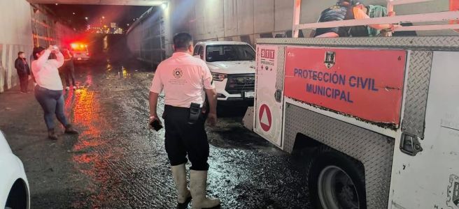 La Dirección Municipal de Protección Civil informa que, derivado de las condiciones climatológicas registradas en la capital, se llevó a cabo el rescate de cuatro personas del sexo masculino cuyos vehículos quedaron varados en el desnivel que lleva a la Plaza San Luis.
