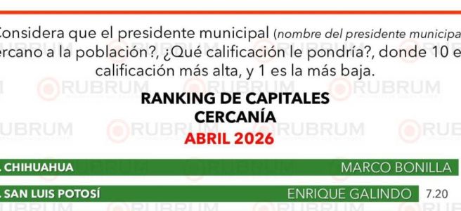 El Gobierno de la Capital se posiciona entre los mejor evaluados del país, mientras que el Alcalde Enrique Galindo Ceballos se ubica en los primeros lugares nacionales en cercanía con la población y desempeño, de acuerdo con la más reciente medición de la encuestadora Rubrum correspondiente a abril.
