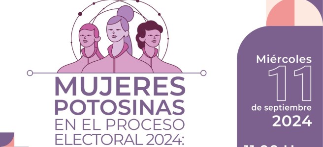 Buen día, CEEPAC e INE organizan el Encuentro de Mujeres Potosinas en el Proceso Electoral 2024: Retos y Aprendizajes, que se llevará a cabo el próximo miércoles 11 de septiembre a las 11:00 horas, en el Sky Room del Hotel Panorama. Estarán presentes: la Consejera Presidenta del CEEPAC, Paloma Blanco López; el Vocal Ejecutivo de … Sigue leyendo ENCUENTRO DE MUJERES POTOSINAS EN EL PROCESO ELECTORAL 2024