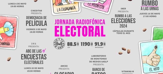 Radio y Televisión de la UASLP estrena su primer jornada radiofónica sobre cultura electoral a través de una programación especial. El proyecto, tiene como objetivo fomentar el análisis y el diálogo ciudadano sobre el entorno social, cultural y político del proceso electoral.Las producciones se podrán sintonizar durante todo el mes de mayo a través de … Sigue leyendo REALIZARÁ RADIO Y TV UNIVERSITARIA LA PRIMER JORNADA ELECTORAL